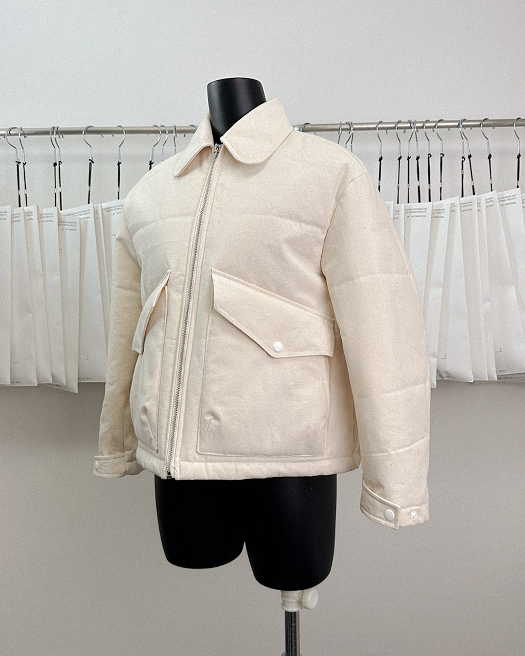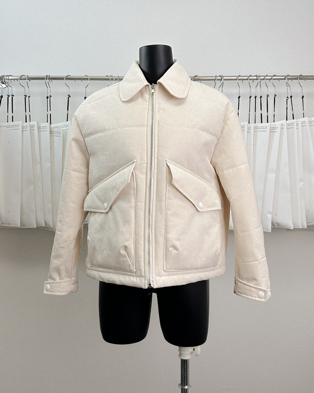· 8온스 충전재를 넣은 칼라 디테일의 숏 패딩입니다