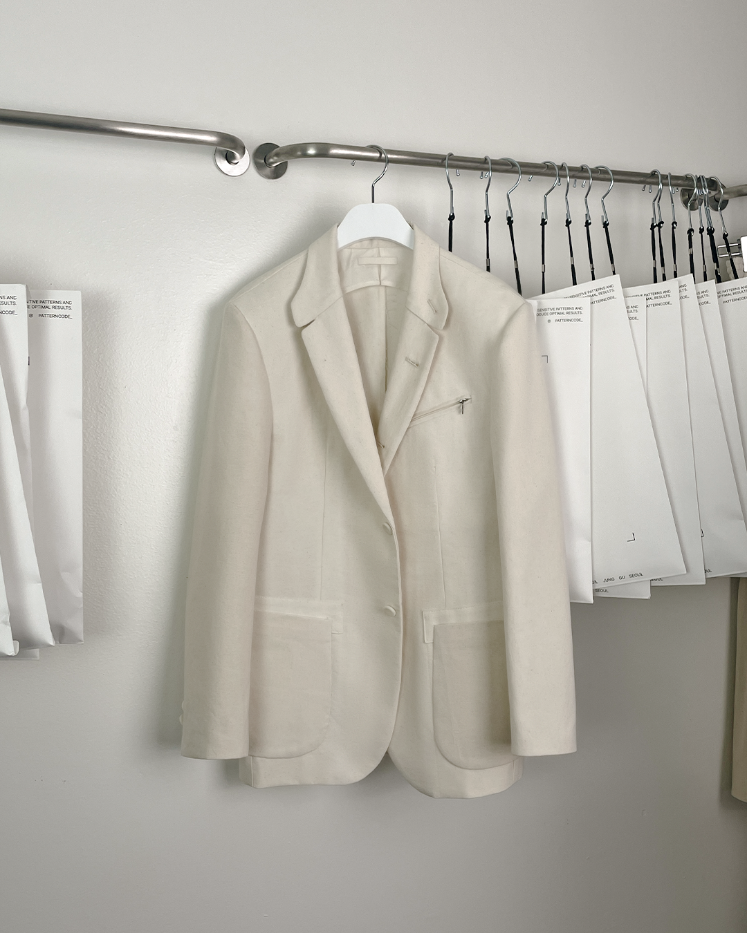· 라펠을 펼쳐 끝까지 잠궈 입을 수 있는 2WAY 여밈 방식