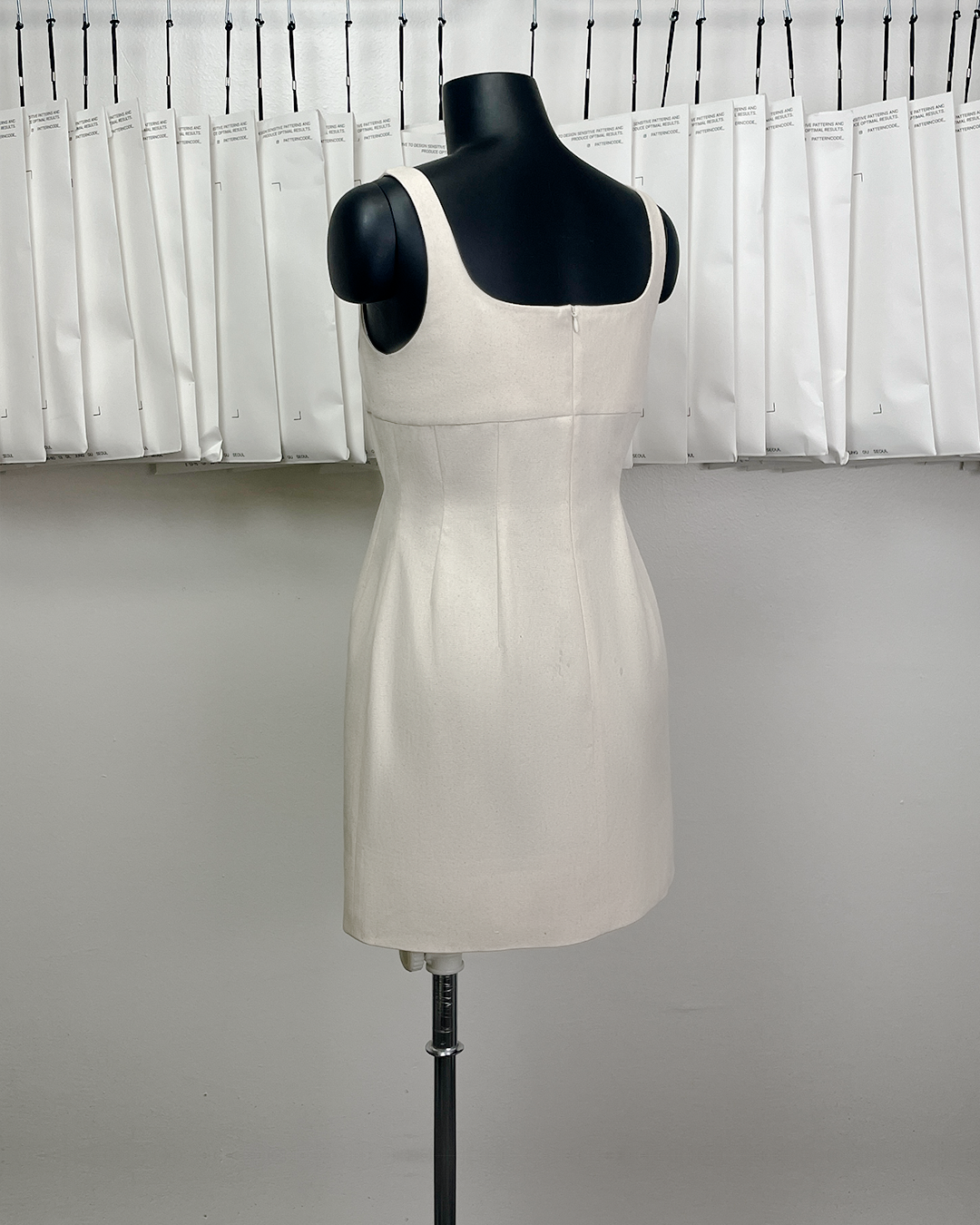 · 스퀘어 네크라인의 타이트한 미니 드레스입니다.