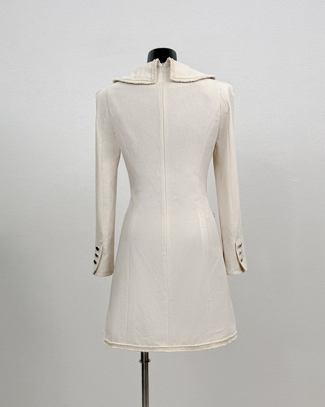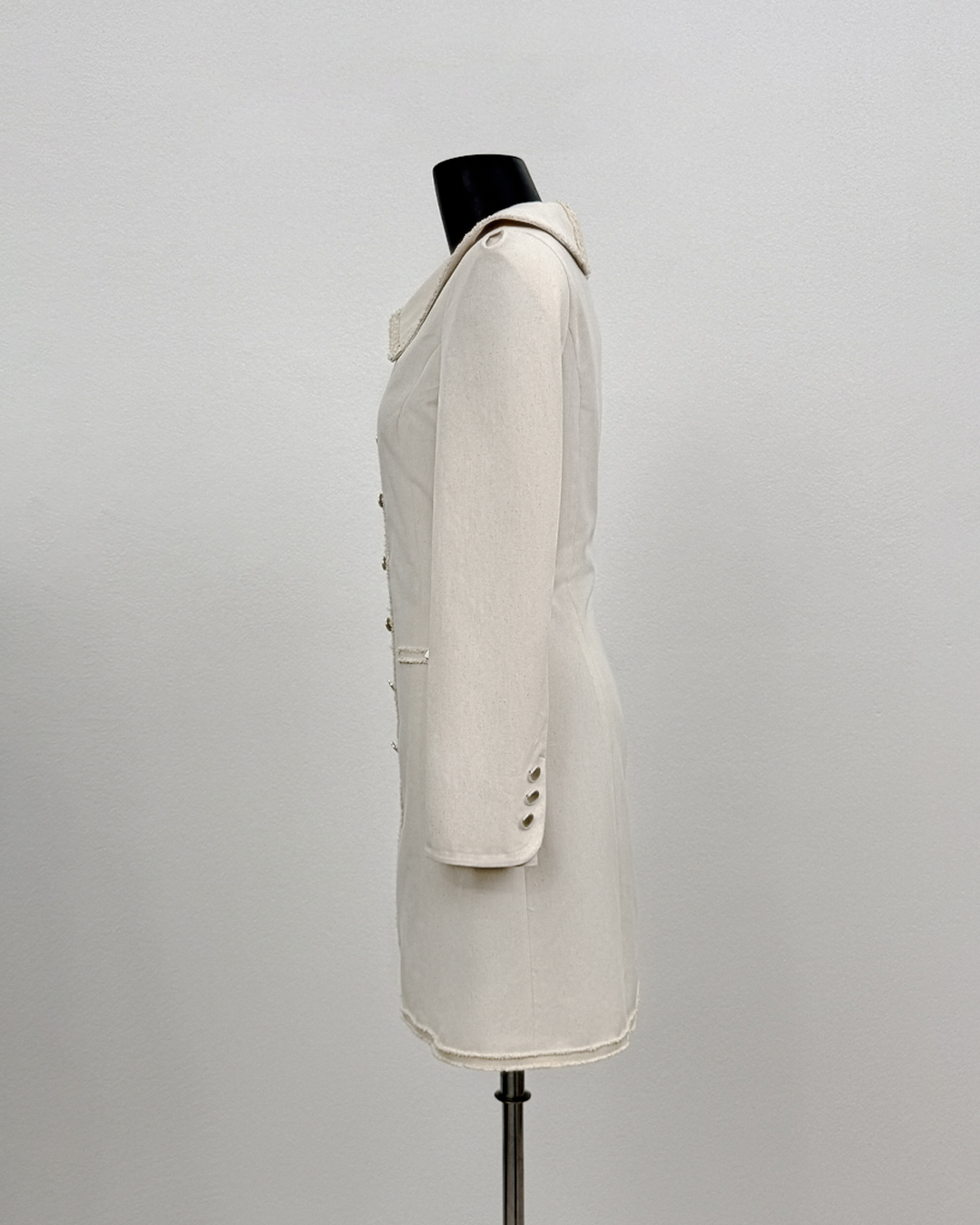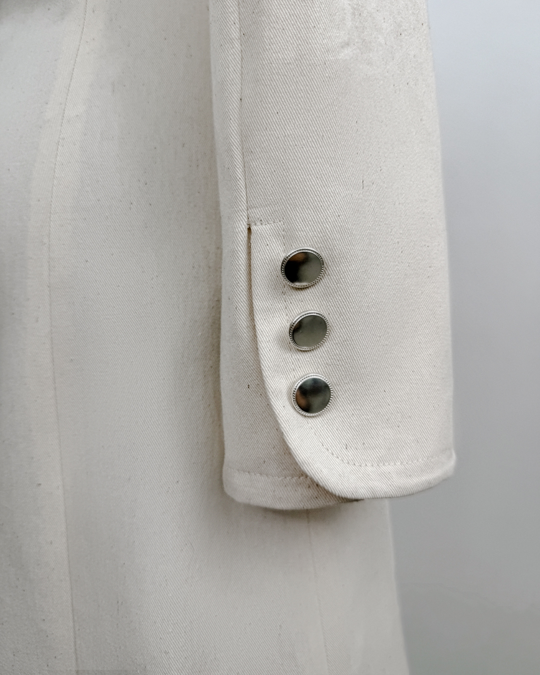 · 몸판과 소매에 통일된 금속 단추 디테일