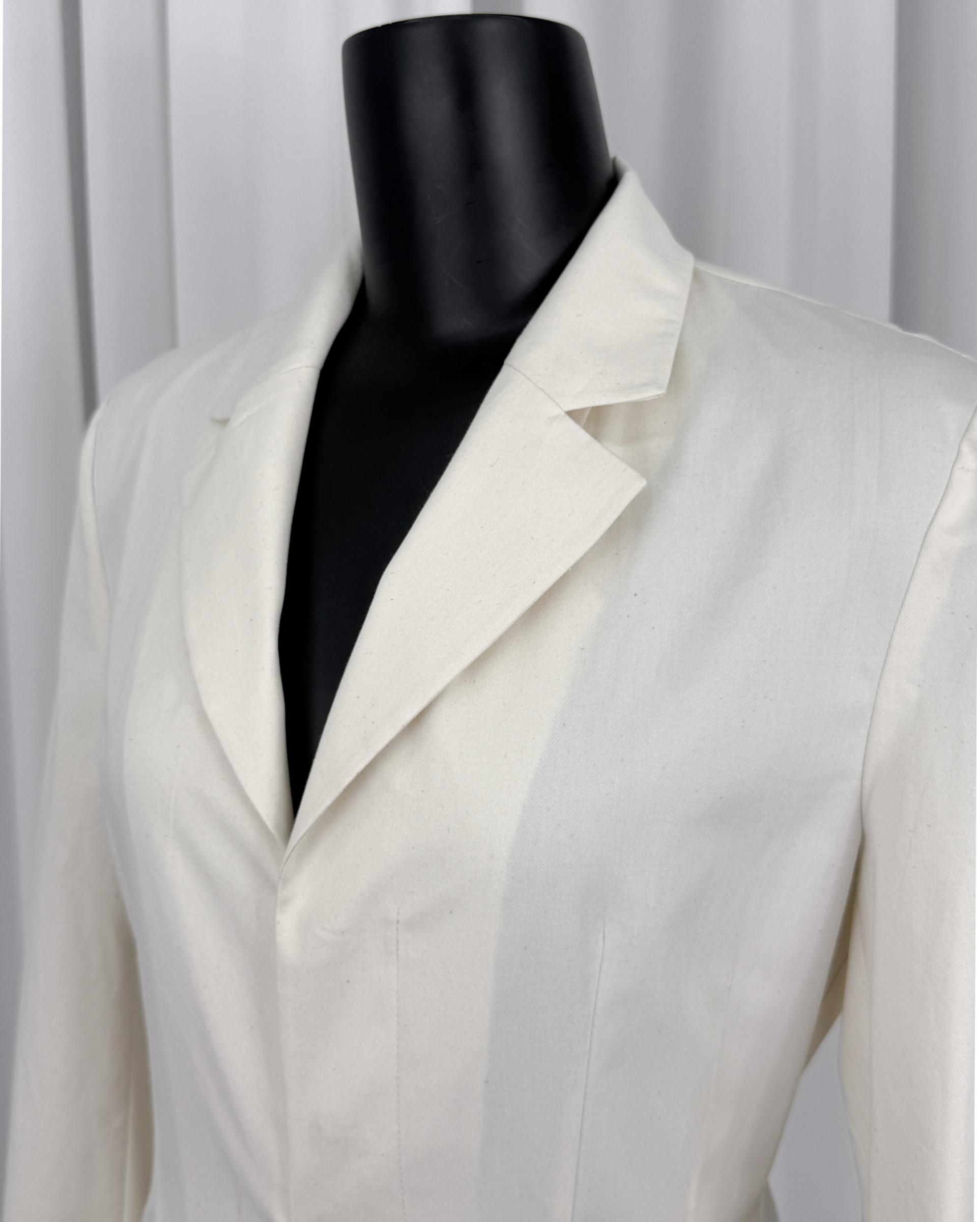· 깊은 브이라인의 라펠과 타이트한 소매의 상의
