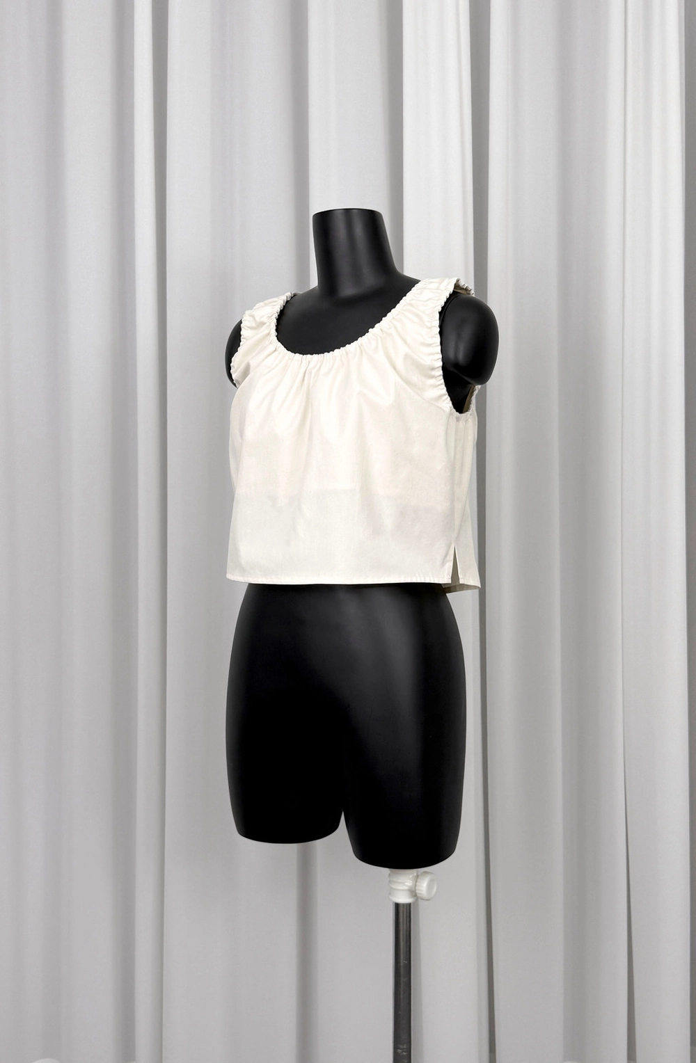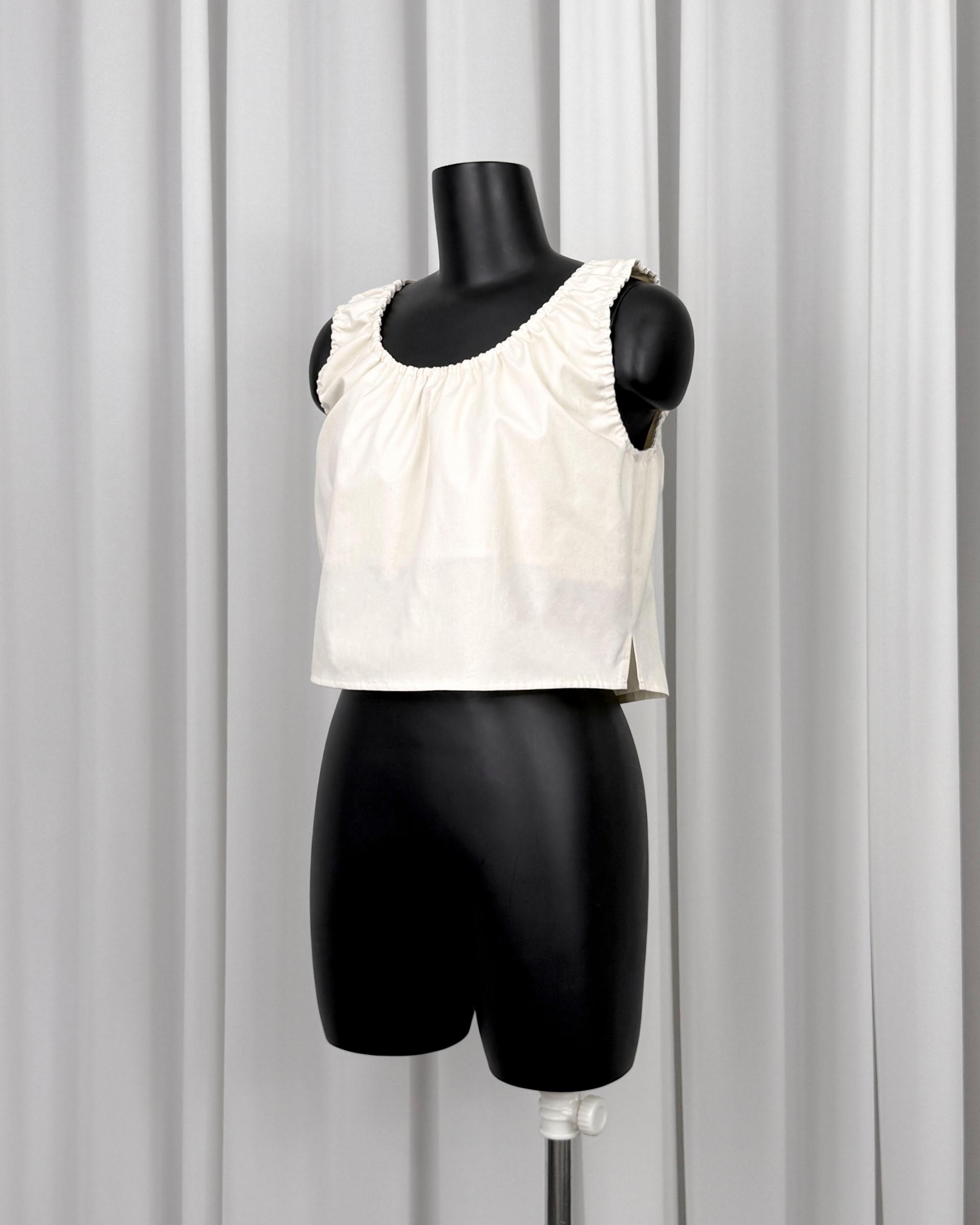 · 넥과 암홀라인의 셔링밴드로 유연성 제공