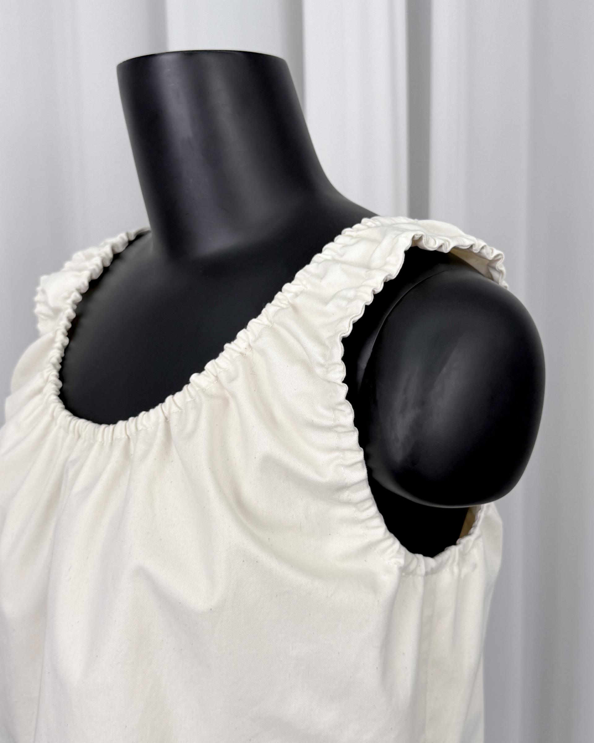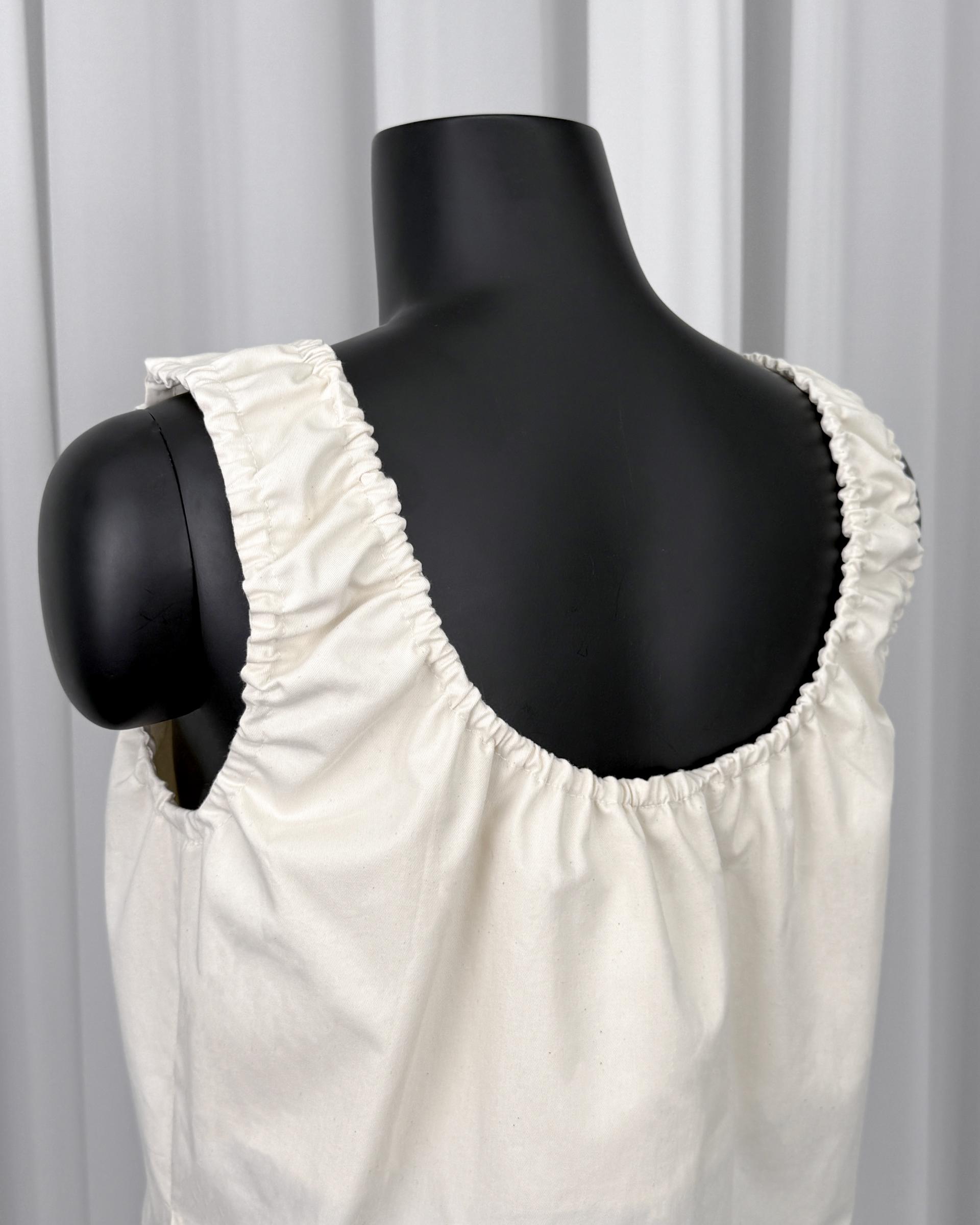 스쿱 넥 슬리브리스