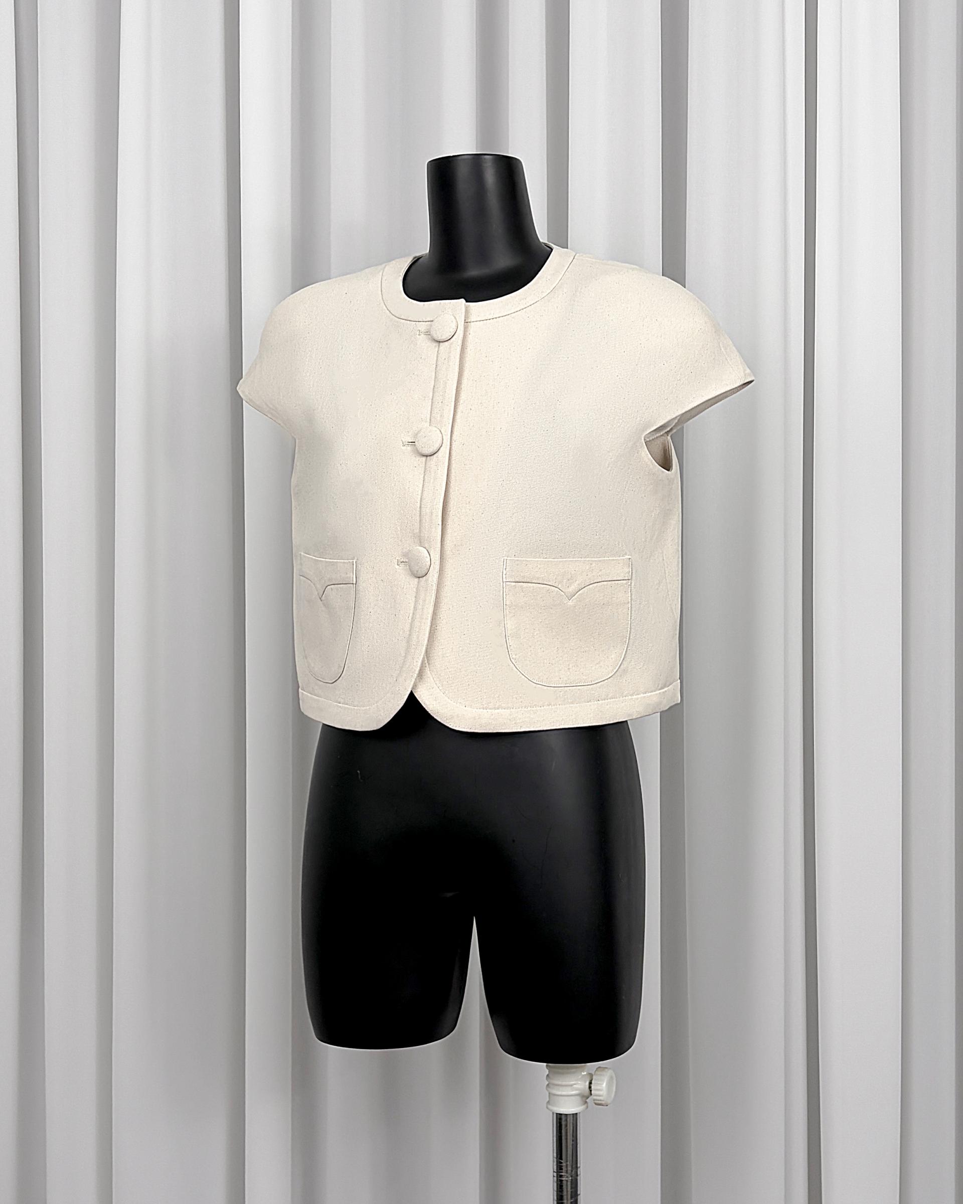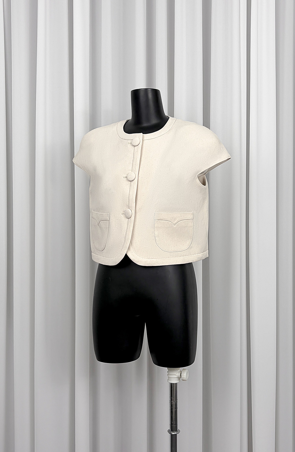 · 어깨 패드로 연출된 캡 숄더 베스트