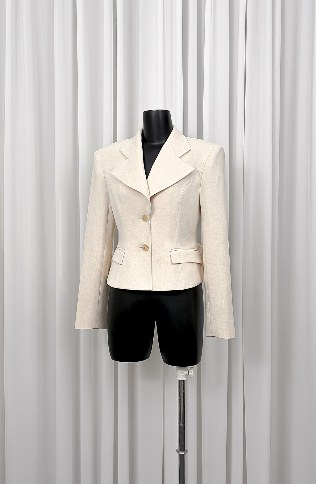 · 넓은 라펠과 둥근 꺽임선 포인트