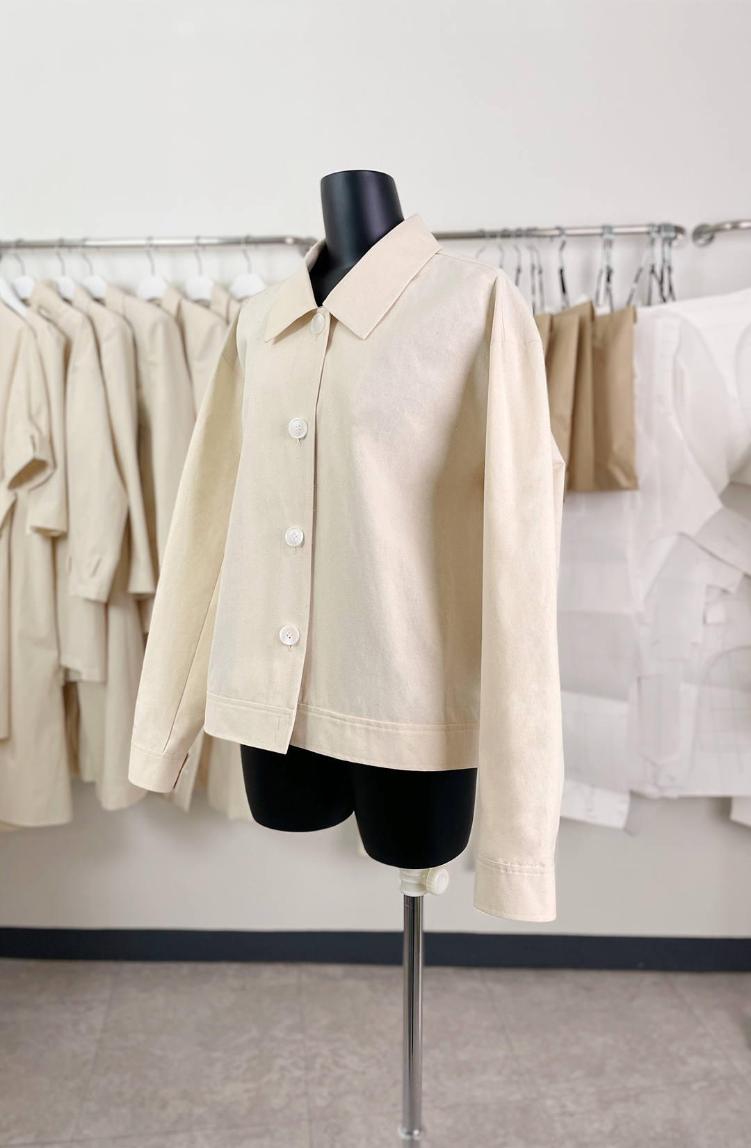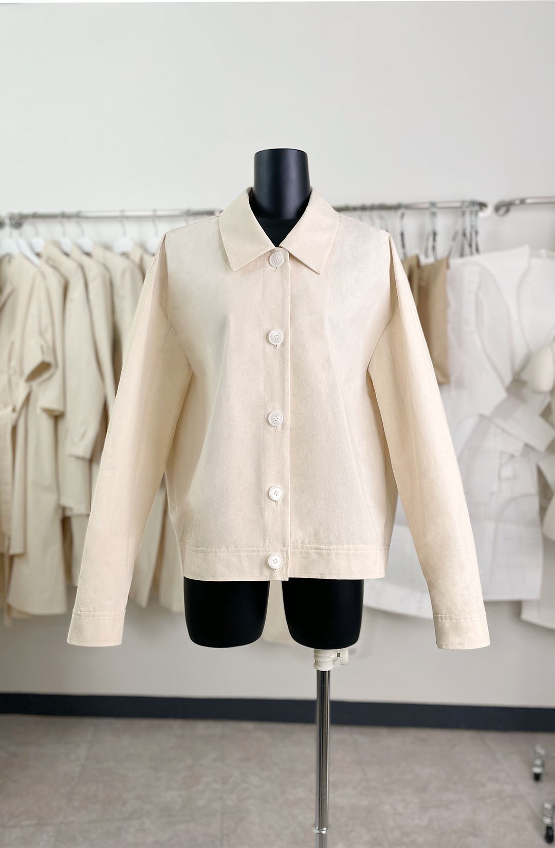 · 미니멀한 트러커 디자인으로 여밈과 커프스엔 동일한 사이즈의 단추를 적용하여 포인트를 주었습니다.