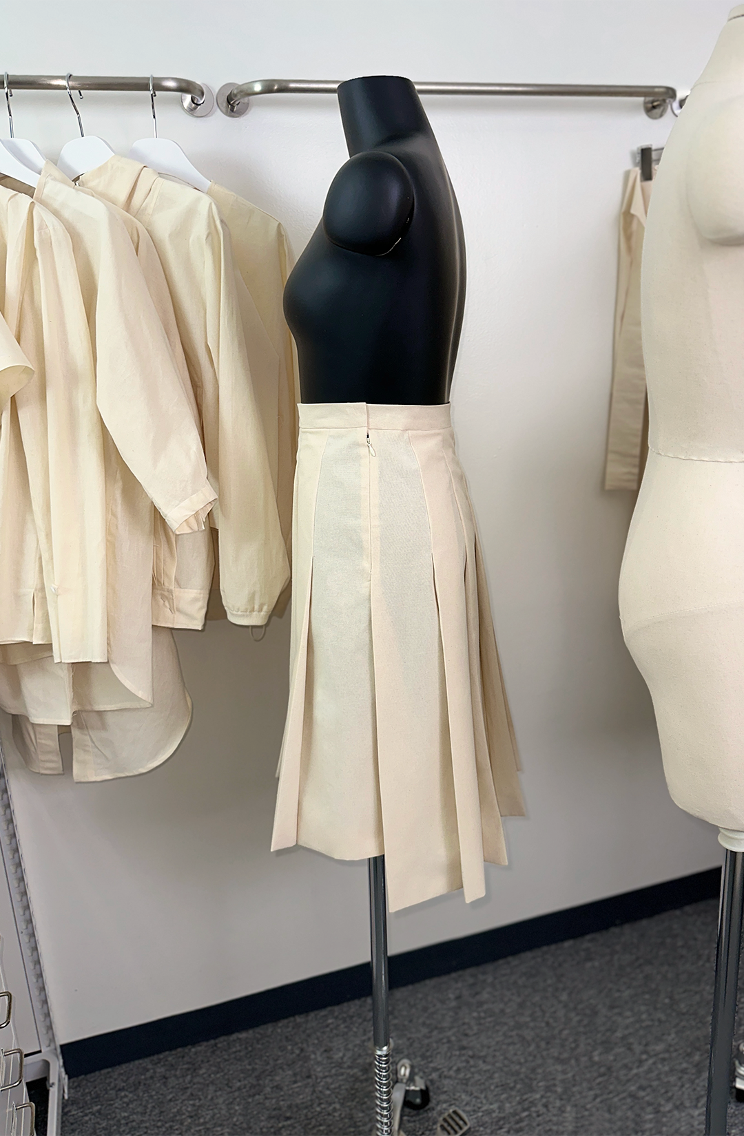 · 앞, 뒤 총장 단 차가 있는 스탠다드 핏의 미디렝스 플리츠 스커트입니다.