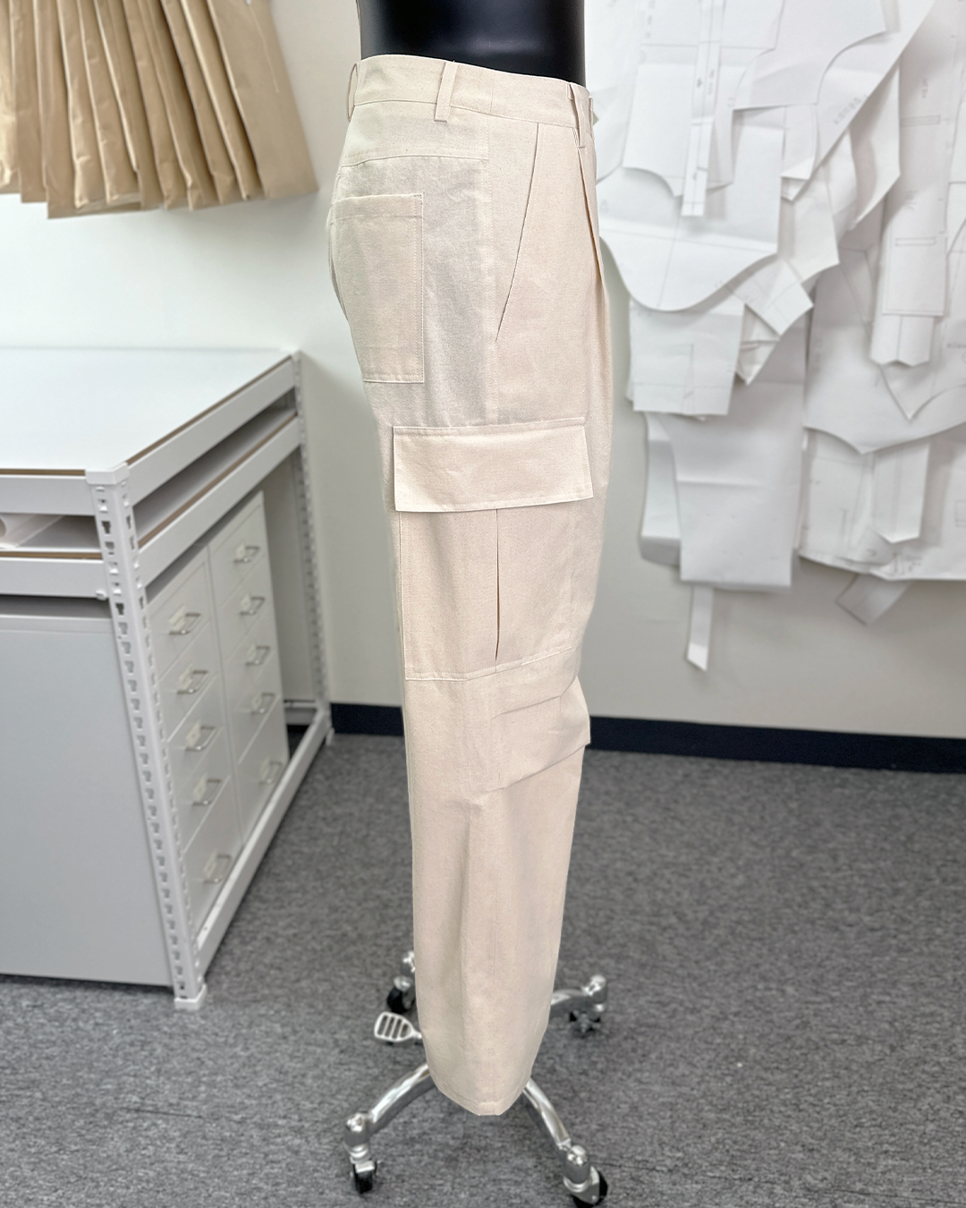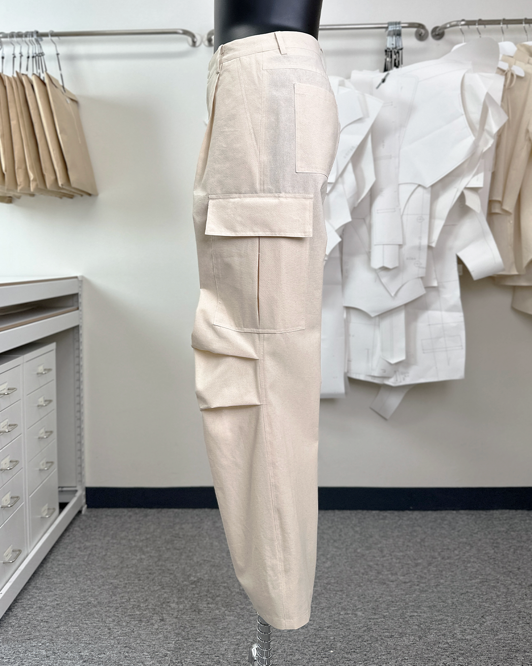 · 허리와 무릎 방향에 깊게 접힌 턱 디테일로 완성된 입체적인 팬츠는 마치 파라슈트를 연상시키는 트렌디한 디자인의 카고 팬츠입니다.