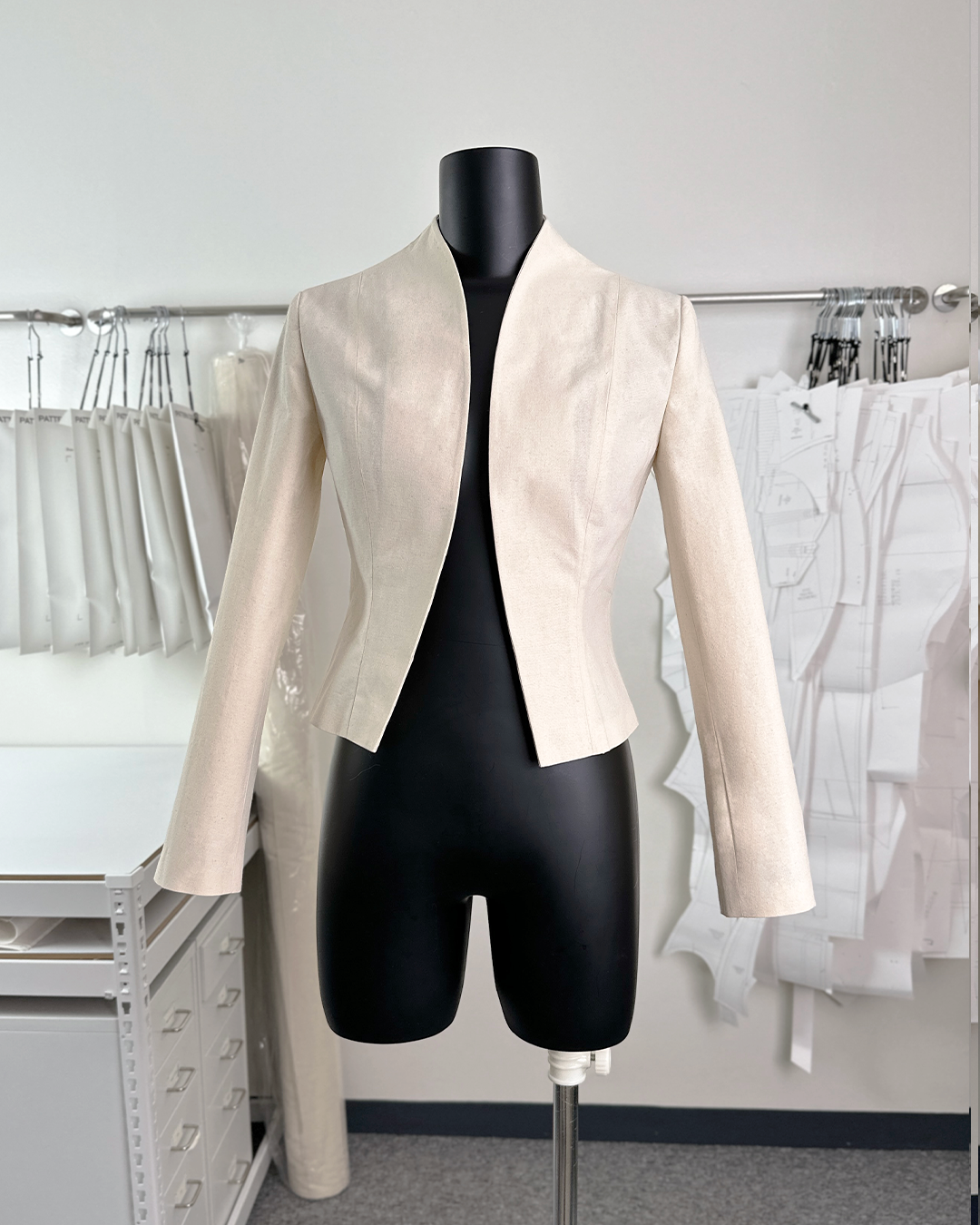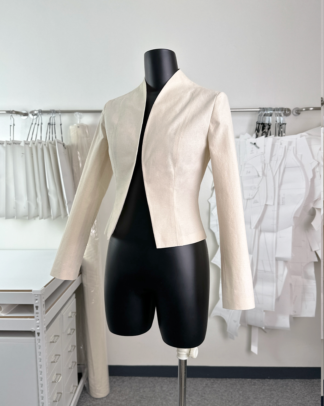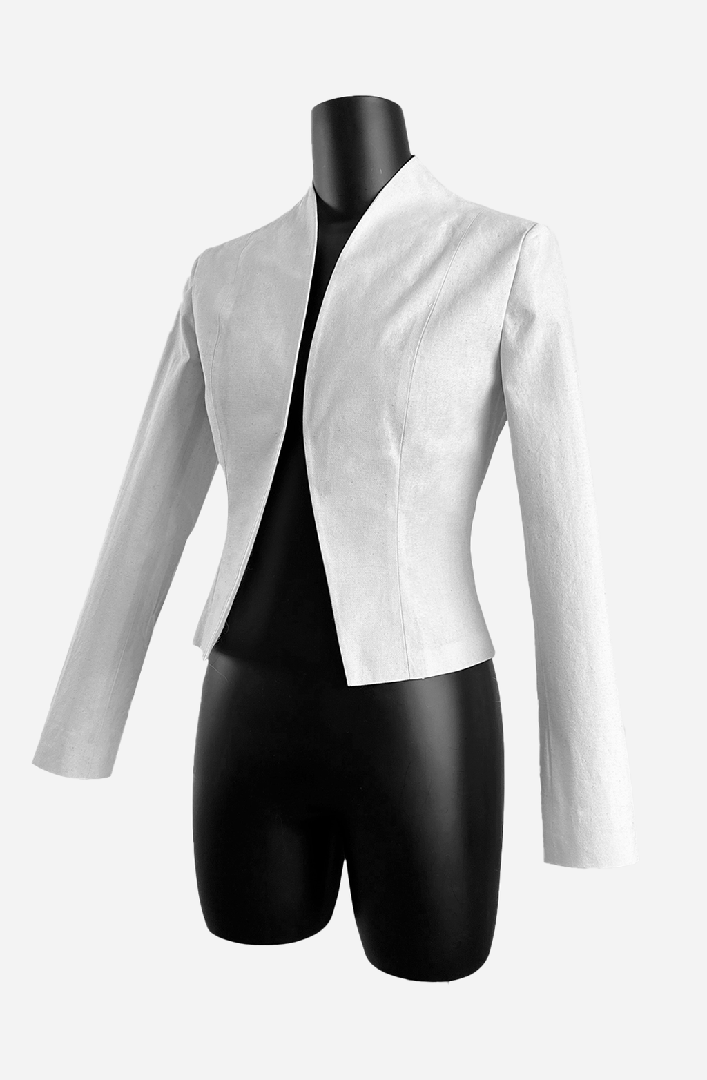· 곡선으로 마감된 여밈과 자연스럽게 연결된 하이넥 칼라가 매력적인 크롭 자켓입니다.