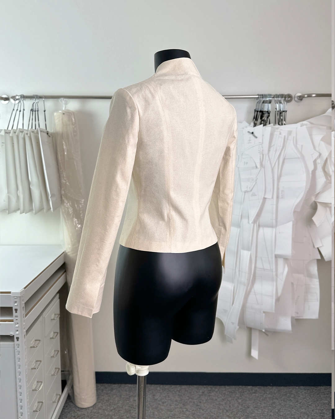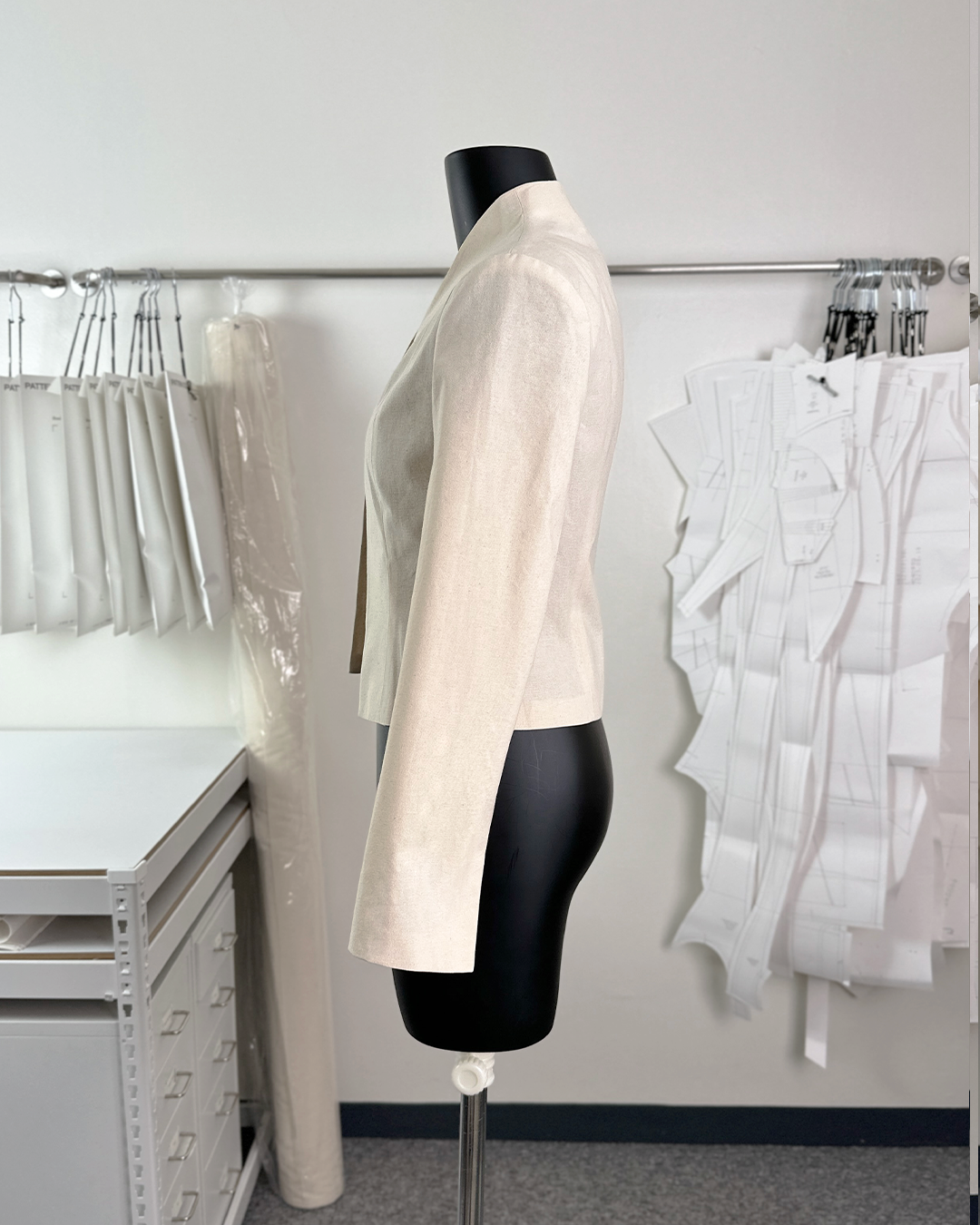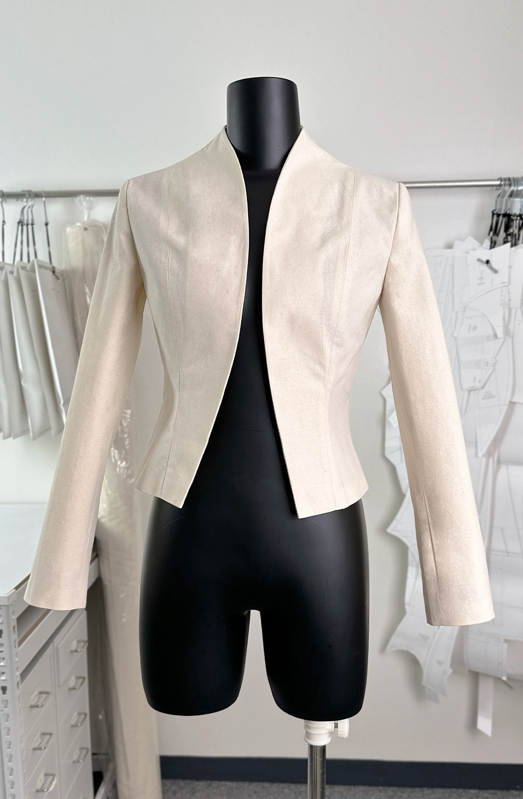 · 곡선으로 마감된 여밈과 자연스럽게 연결된 하이넥 칼라가 매력적인 크롭 자켓입니다.