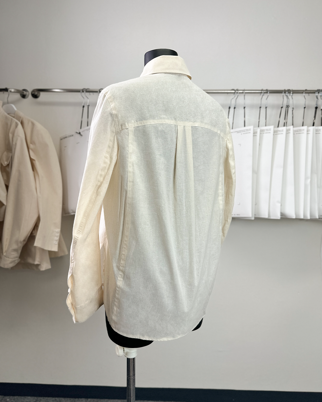 · 뒷방향으로 자연스럽게 감싸지는 벌룬 핏 셔츠입니다.