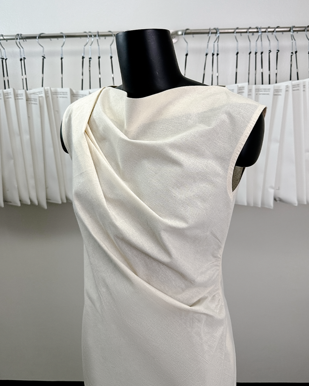 · 바이어스 방향으로 재단된 앞판의 드레이퍼리 실루엣
