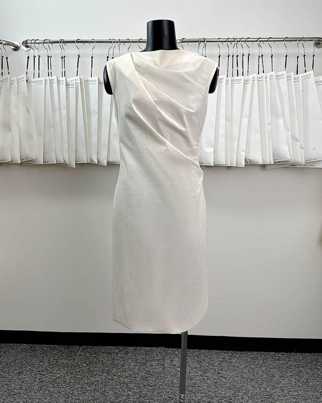 · 드레이프 실루엣이 강조된 미디 드레스입니다.